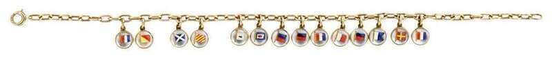 Each charm displaying a signal flag reverse painted in rock crystal.