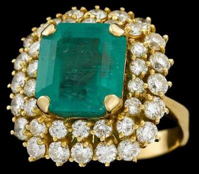 18 karat yellow gold, emerald and diamond dinner ring