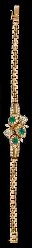 18 karat yellow gold, emerald and diamond bracelet