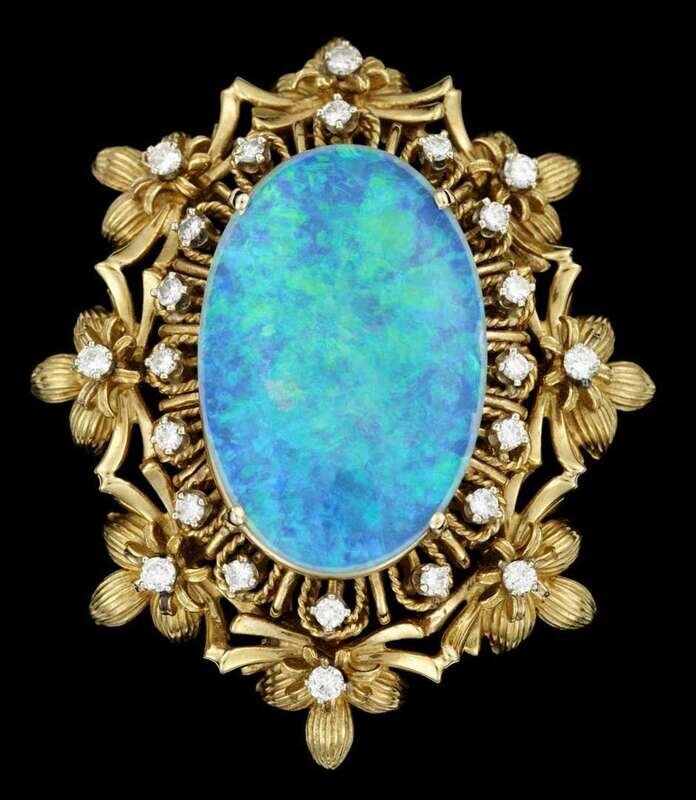 Impressive 18 karat yellow gold and black opal pendant mid 20th century
