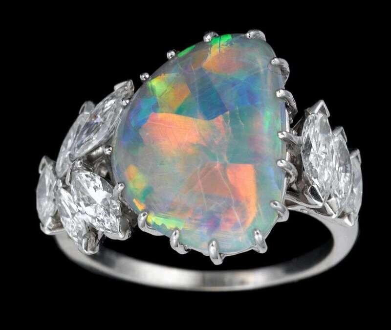 Platinum and diamond black opal ring ca. 1960