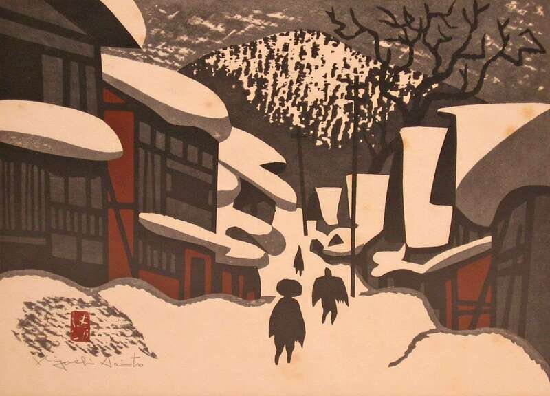 TWO PRINTSKIYOSHI SAITO (JAPANESE 1907-1997) VILLAGE IN WINTER