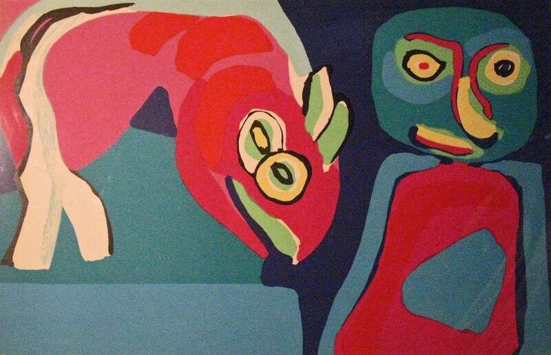 KAREL APPEL (DUTCH 1921-2006) "CHILD WITH PRETEND ANIMAL"