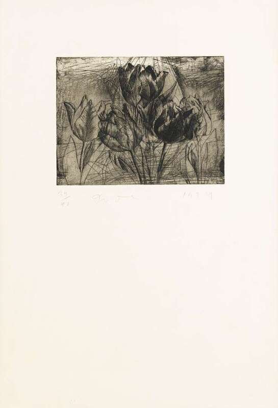 JIM DINE (AMERICAN B.1935) "SELF-PORTRAIT IN A SKI HAT-TULIPS"
