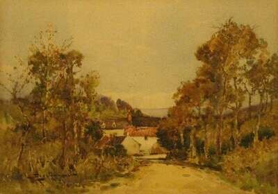 TWO WATERCOLORSEYRES SIMMONS (BRITISH FL.1902-1914) VILLAGE SCENES