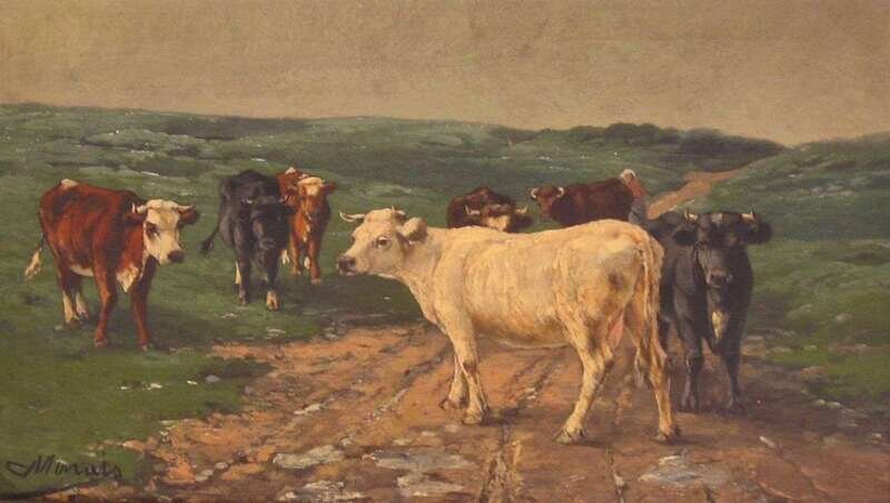 MORAIS (FRENCH 19TH CENTURY) COWS ON A COUNTRY PATH