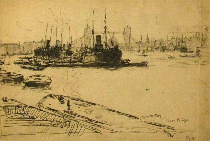 THREE DRAWINGSJAMES MCBEY (BRITISH 1883-1959) "TOWER BRIDGE"