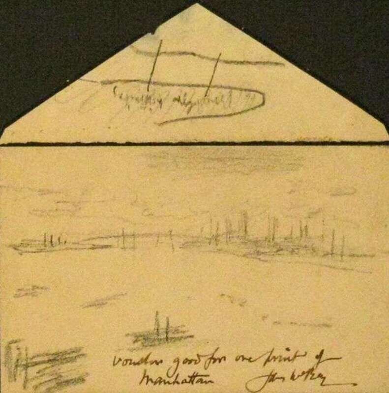 Signed and inscribed 'voucher good for one print of Manhattan', graphite on envelope