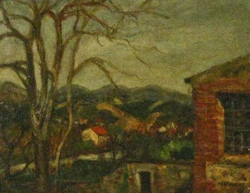 ARBIT BLATAS (LITHUANIAN 1908-1999) RIVER VALLEY VILLAGE
