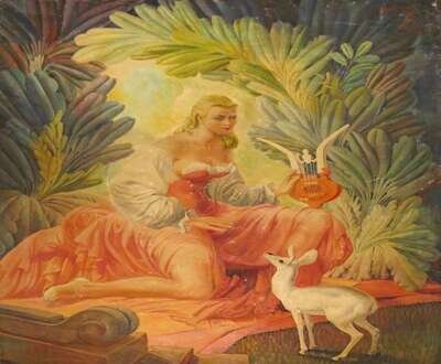 ANDRE MAURICE DURENCEAU (AMERICAN 1904-1985) WOMAN WITH WHITE DEER IN BUCOLIC LANDSCAPE