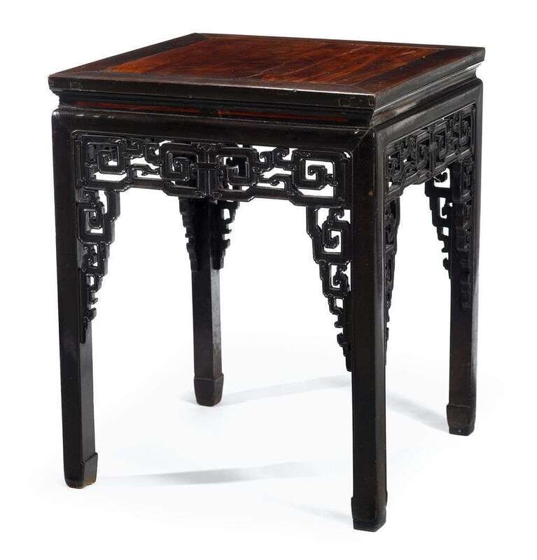 Chinese tielimu and softwood insert square corner table 18th / 19th century