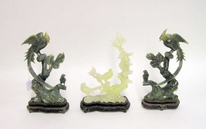 Three Chinese green stone bird groupings