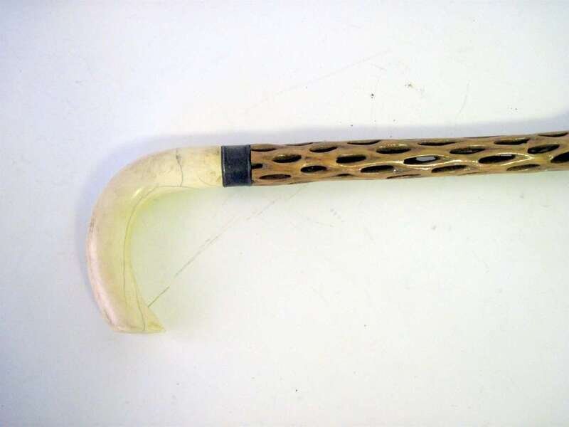 Interesting pierced hardwood and ivory handled walking stick probably colonial, 19th century