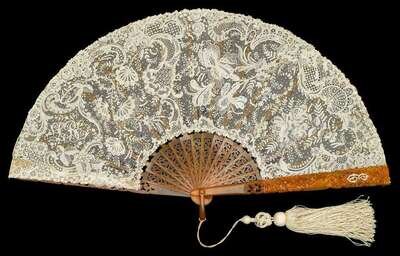 Victorian diamond mounted blonde tortoiseshell and belgian lace fan circa 1880
