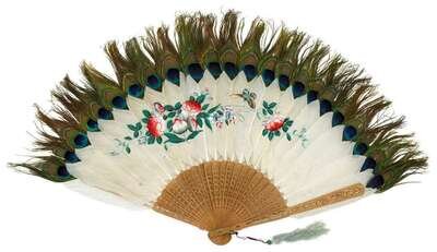 Chinese goose and peacock feather painted fan 19th century
