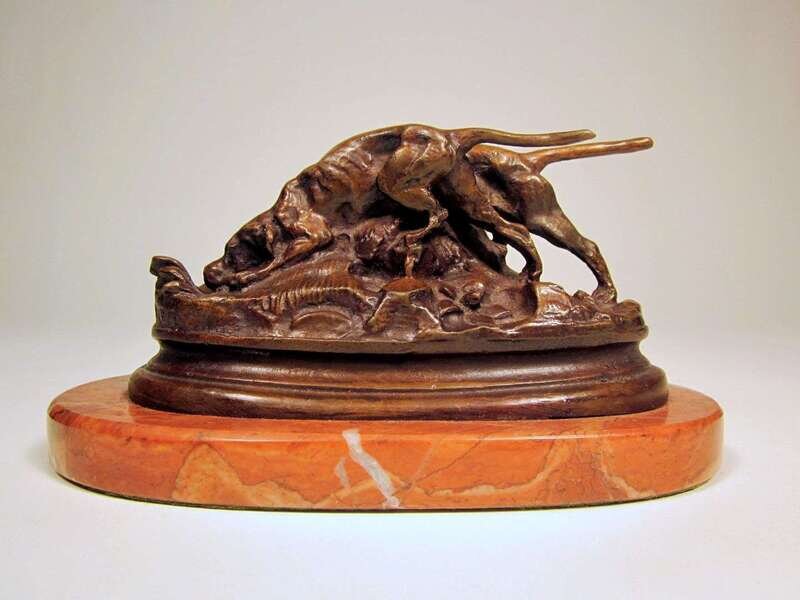 After Antoine-Louis Barye, (French, 1795-1875) pointers on the scent