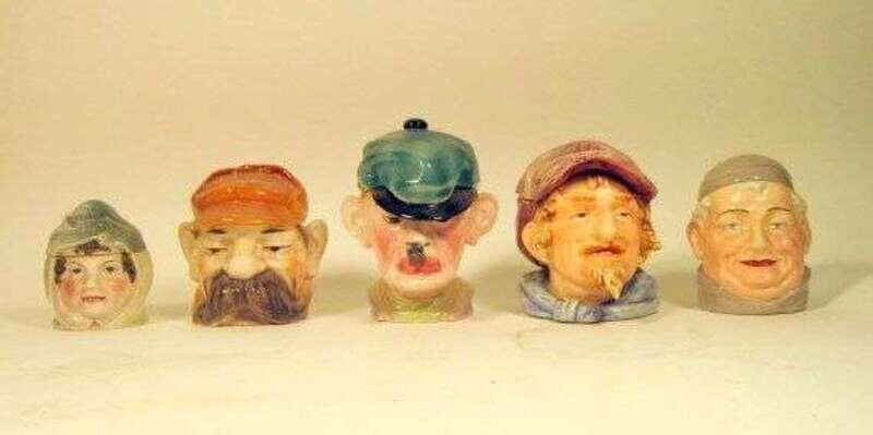 Group of Continental Character head ceramic tobacco jars early 20th century, mostly austrian
