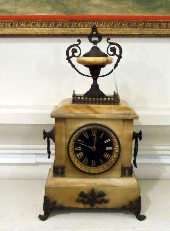 Neoclassical style spelter mounted onyx mantle clock retailed by bailey, banks and biddle, philadelphia