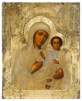 Russian silver gilt oklad icon "Panagia Hodegetria" moscow, 1881