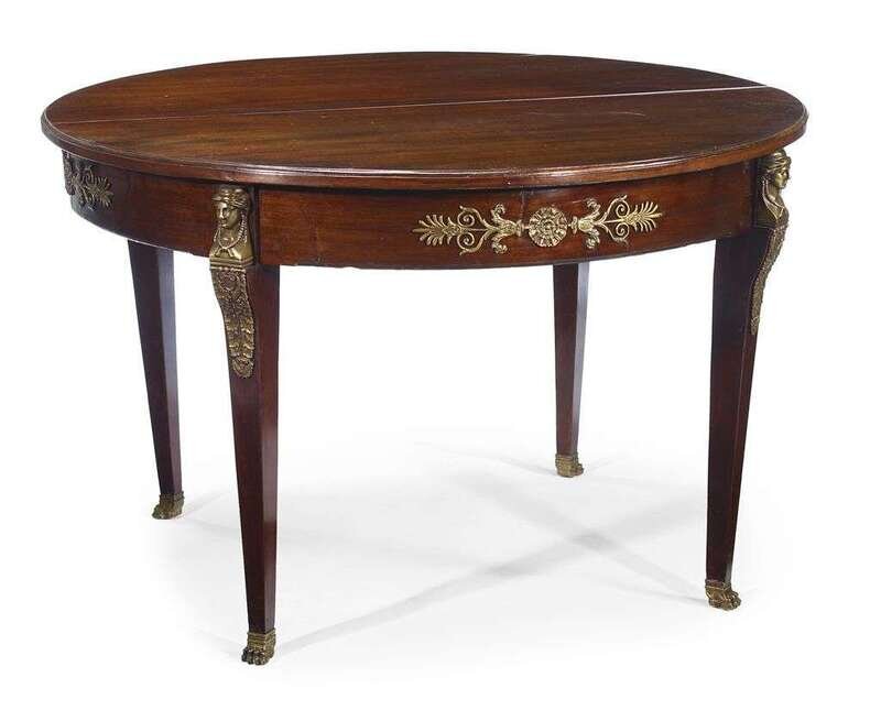 Directoire style gilt metal mounted mahogany center table