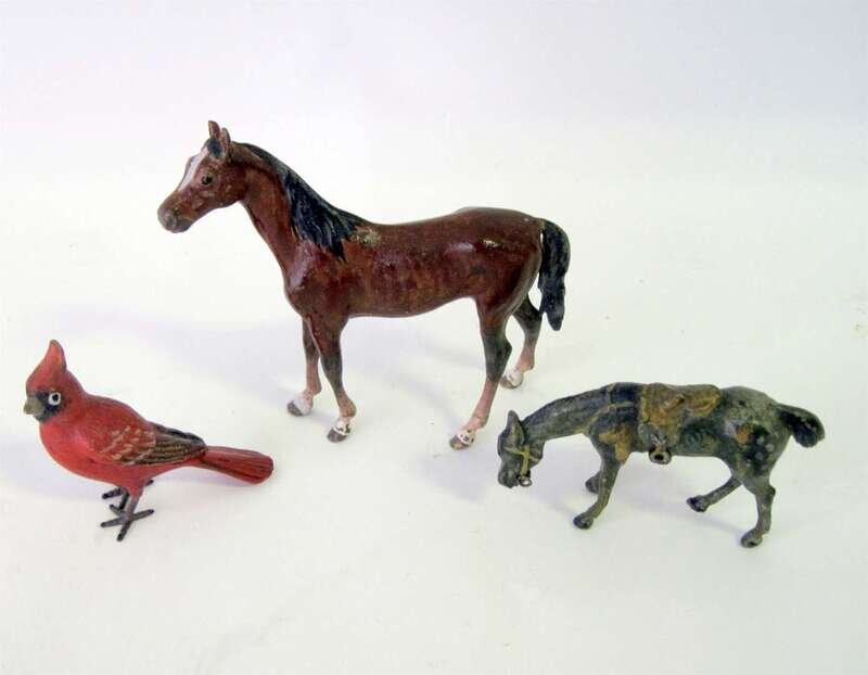Comprising two horses and a red cardinal; the horses with stamped marks. (3).