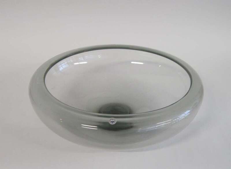 Danish glass centerpiece bowl designed by per lutkin for holmegaard, circa 1960