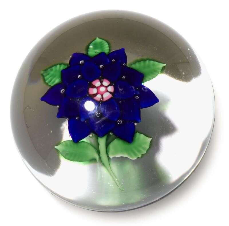 Unusual Boston & Sandwich Co. blue poinsettia paperweight circa 1860