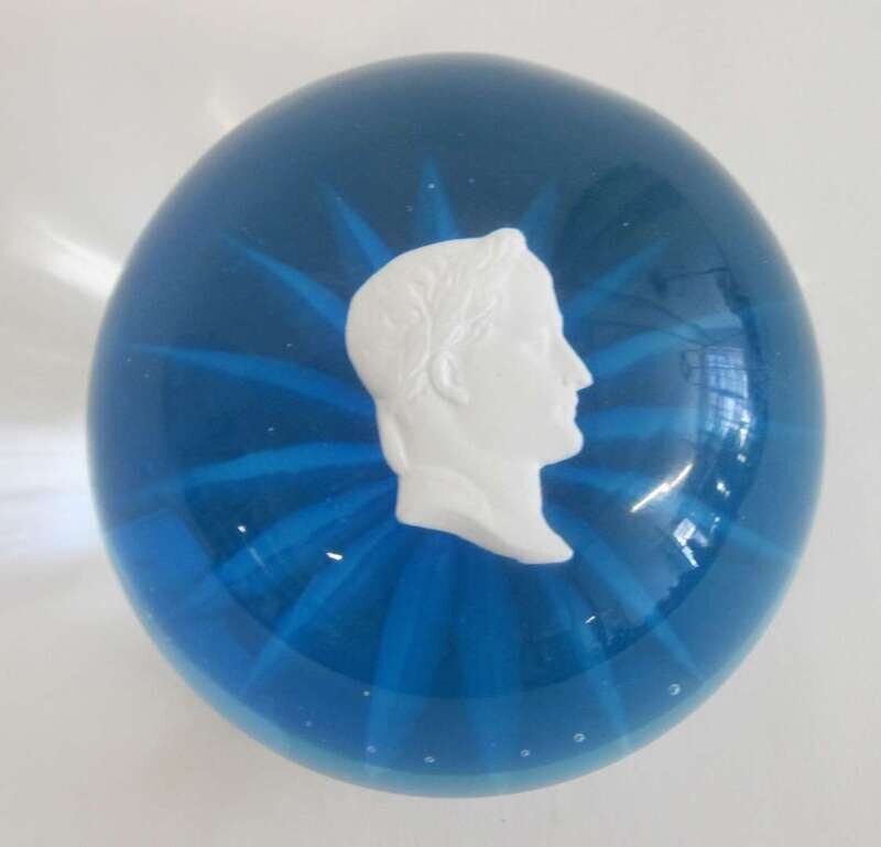 Depicting a profile of Napoleon, on a blue ground, with star-cut base.