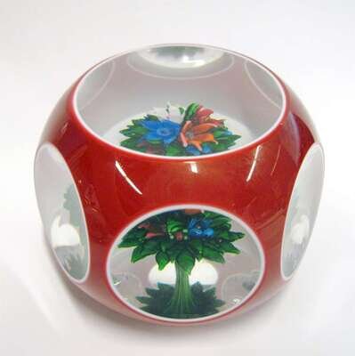 St. Louis double overlay faceted upright bouquet paperweight limited edition 37/200, dated 1983