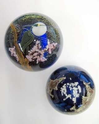 Steven Lundberg 'Blue Heron and Full Moon' compound paperweight limited edition 168/250, dated 1986