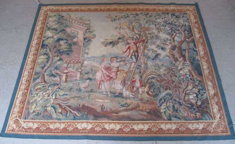 Depicting a pastoral scene of figures in 18th century dress, gathering berries.