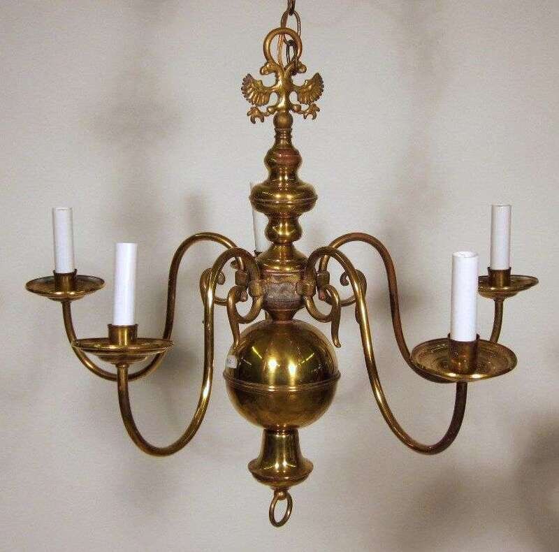 Dutch style eight arm brass chandelier