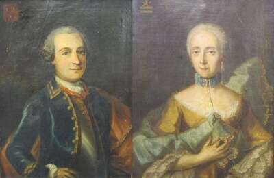Oil on canvas; each with a coat of arms in the upper right corner; unsigned. (2).