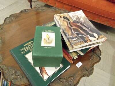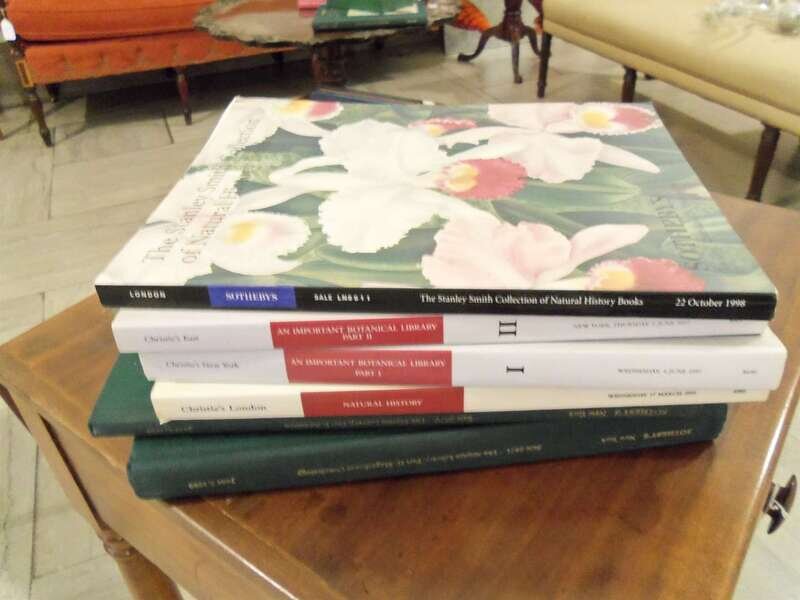 Auction Catalogues & C - Chiefly Natural History, including: Sotheby's. Library of H. Bradley Martin. New York, June 6, 7, & 9, 1989, Dec. 12 & 13, 1989, June 14, 1990. 5 vols. 4to, orig. green cloth, color cover labels. 4 of the 5 are sales of color plate bird books & scientific ornithology. * 6 cloth bound Sotheby's & Christie's Audubon & other bird book sales, ca. 1992-2007. * Sotheby & Co. The Magnificent Botanic Library of The Stiftung fur Botanik. London, 1975. 3 vols. 4to, orig. bds. Illus. Prices realized inserted. * Sotheby's & Christie's color plate Natural History sales, ca. 1988-2009 in orig. color pictorial wrappers (13 vols.). * Christie's. Codex Hammer. New York, 1994. 4to, orig. bds. * Gould, John. The Birds of Great Britain. London: E. Maylin, (1980). 5 vols., 16mo, orig. green cloth, cloth slipcase. Color plates. * Hogg, Min.; Harrop, Wendy. Interiors. New York, (1990). 3rd ptg. 4to, orig. cloth, d/j. Color photo illus.