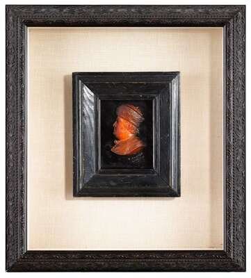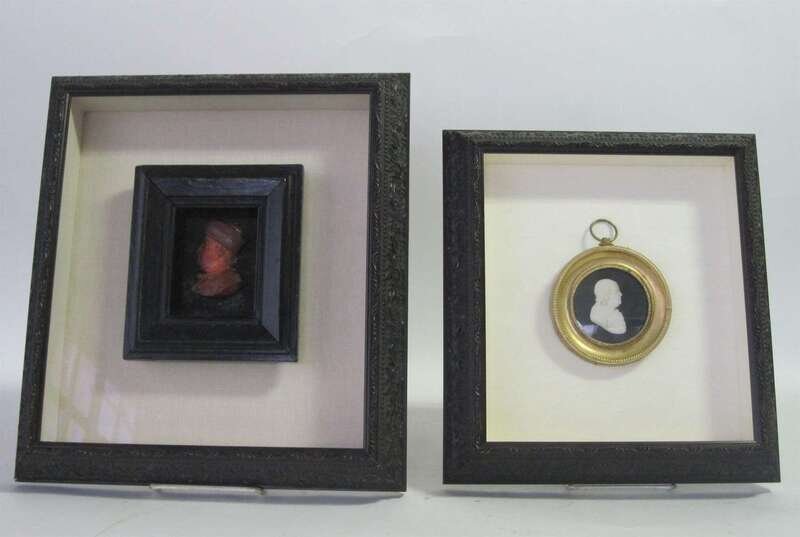Looking to the left; in a double shadowbox frame; together with a miniature painting inscribed 'Rorelly/ Facite' . (2).