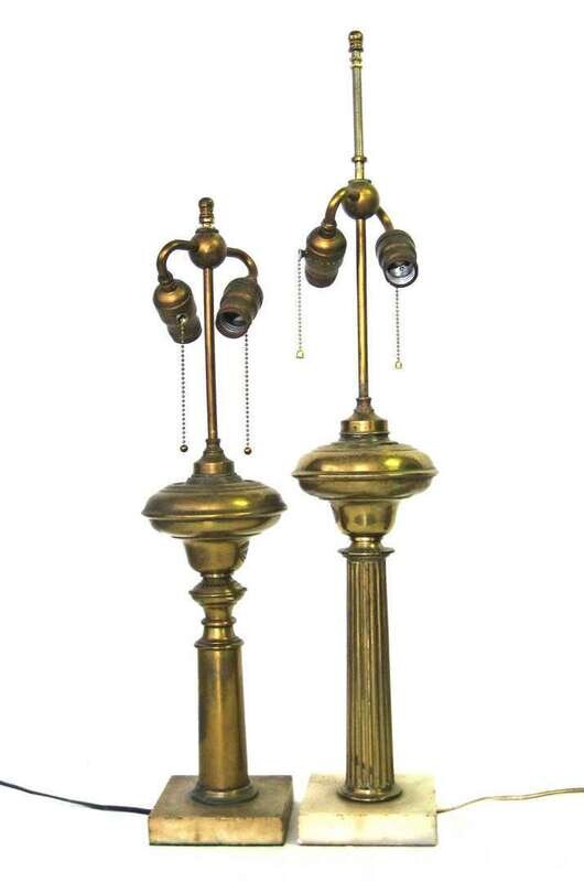 Two American brass and marble solar table lamps philadelphia, mid 19th century