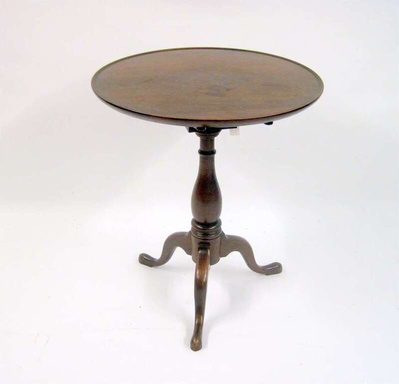 The circular top with molded edge, on a baluster standard, on tripod legs, ending in slipper feet.