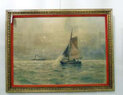 Possibly Sydney Lough Thompson (New Zealand, 1877-1973) sail boat with steam ship beyond