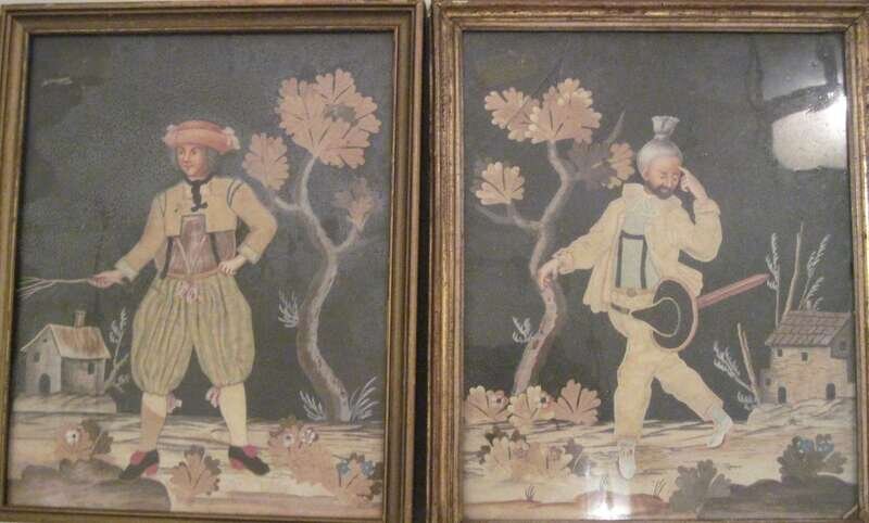 One depicting the Provender of the Monastry, the other in Chinoiserie costume; framed. (4).
