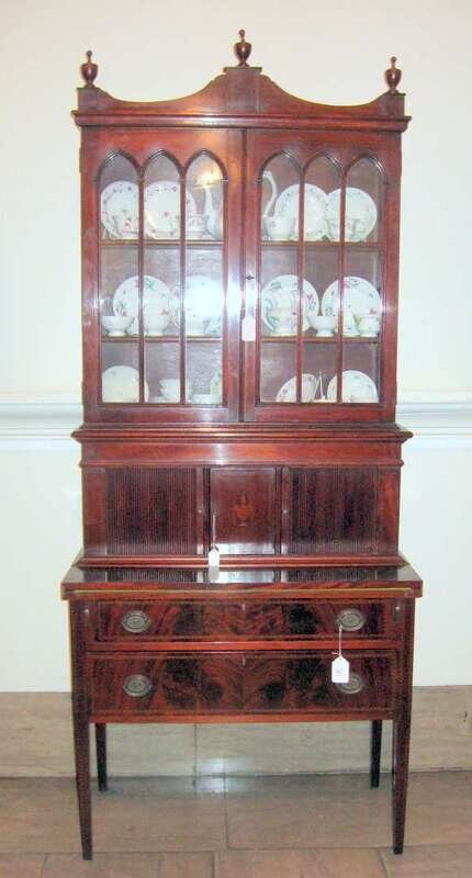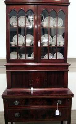 Federal style inlaid mahogany bureau bookcase charak furniture co., boston, massachusetts, 20th century