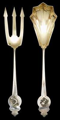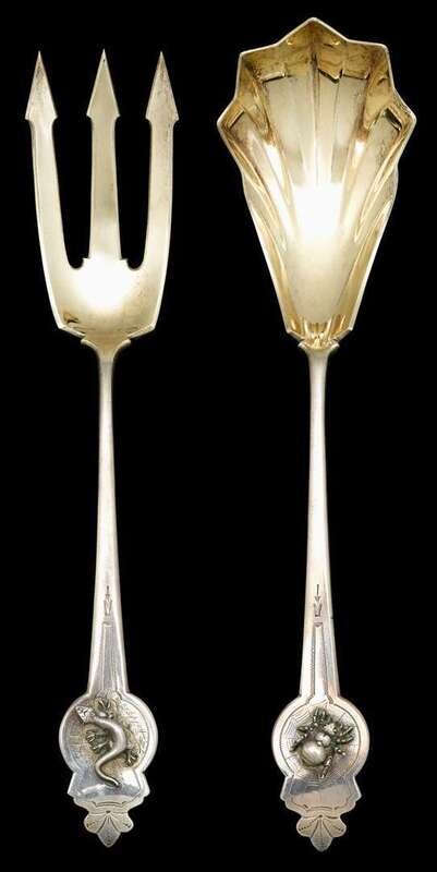 Unusual Gorham sterling silver salad serving set mid to late 19th century