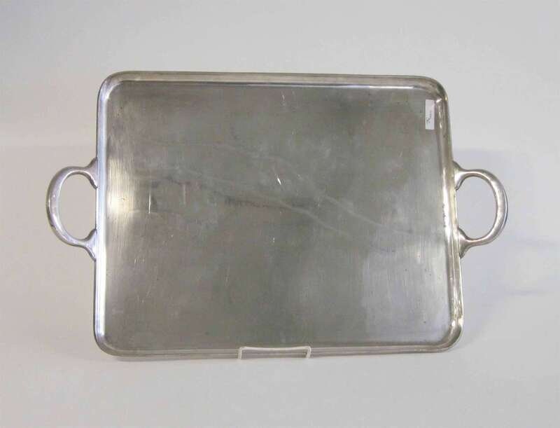 Rectangular, with handles to the sides; stamped 'Palais Royal' and 'sterling'.