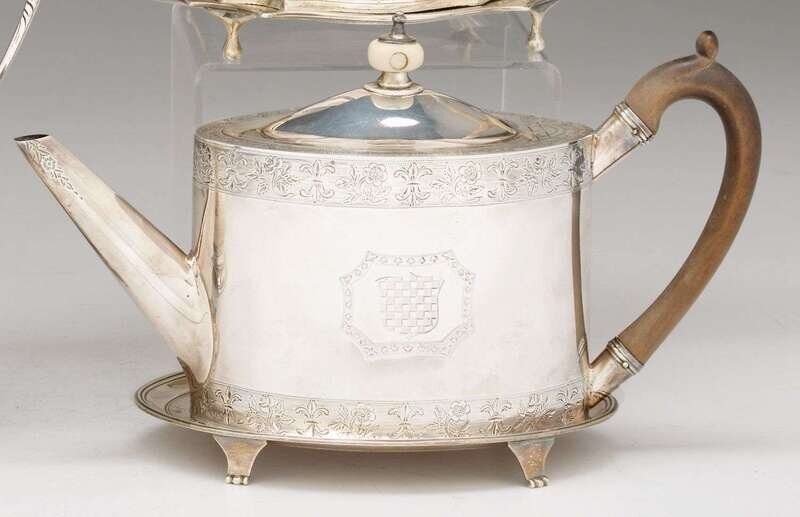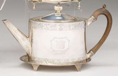 George III silver teapot on stand the teapot london, william pitts, 1791, the stand, london, maker 'EI", 1791