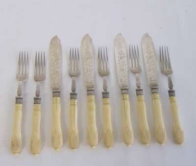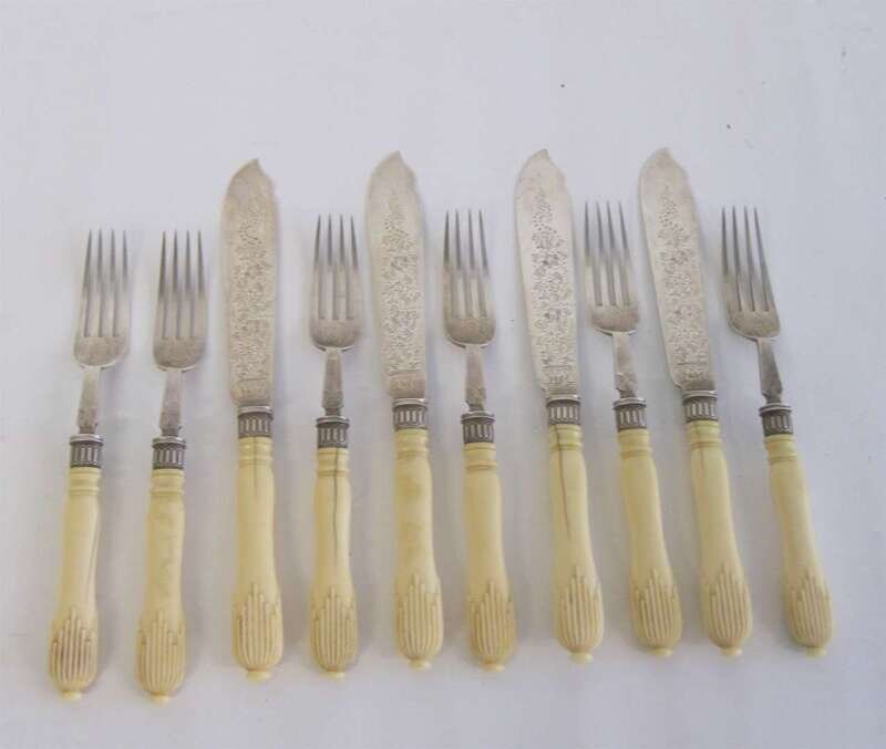 Partial Late Victorian sterling silver and ivory fish service mappin & webb, sheffield, 1896