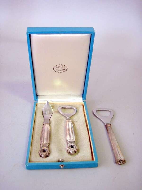 Georg Jensen 'Acorn' pattern sterling silver bar set date mark for post 1945