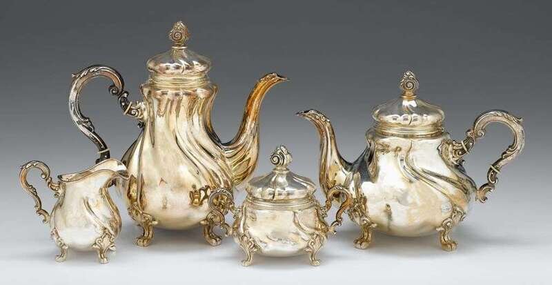 German silver Rococo style four-piece tea and coffee service gebruder deyhle, early 20th century
