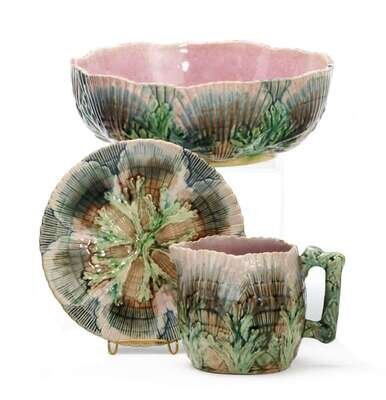 Group of Griffin, Smith & Hill 'Shell and Seaweed' pattern etruscan majolica phoenixville, pa 1879-1892