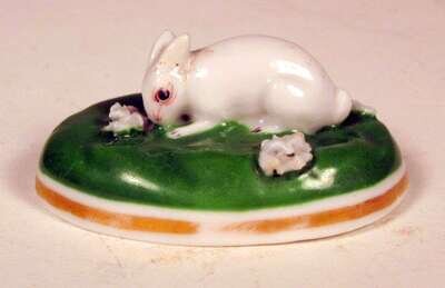 Small English porcelain rabbit model possibly chamberlain worcester, early to mid 19th century