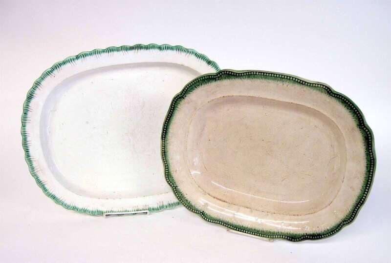 Two Leeds green feather-edge creamware platters 19th century