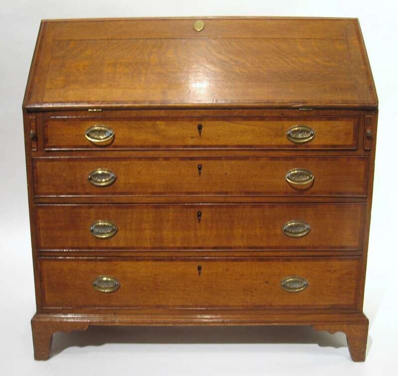 With a drop down front, above four long graduated drawers, raised on bracket feet.